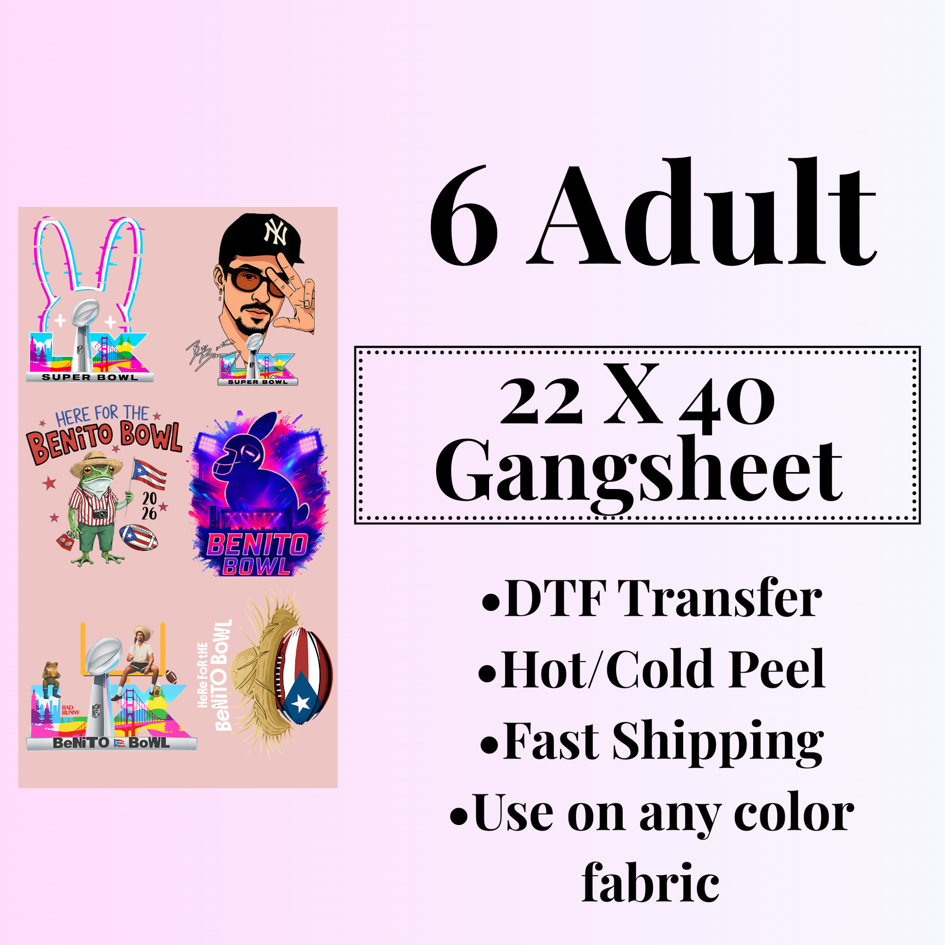 Bad Bunny Superbowl Gangsheet 22x40