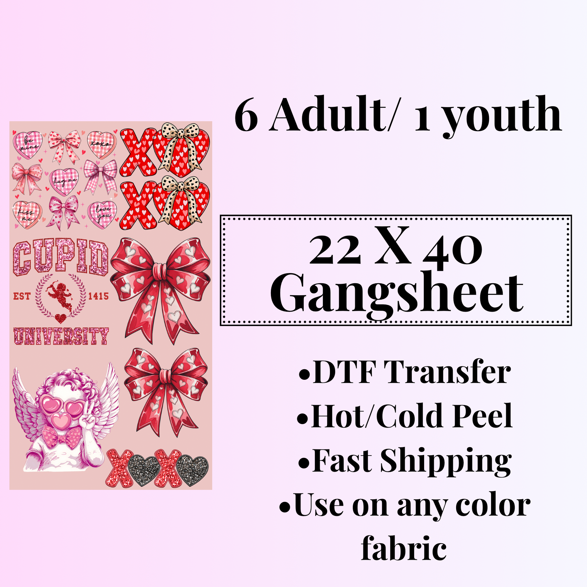 These DTF transfers are printed on a commercial printer.